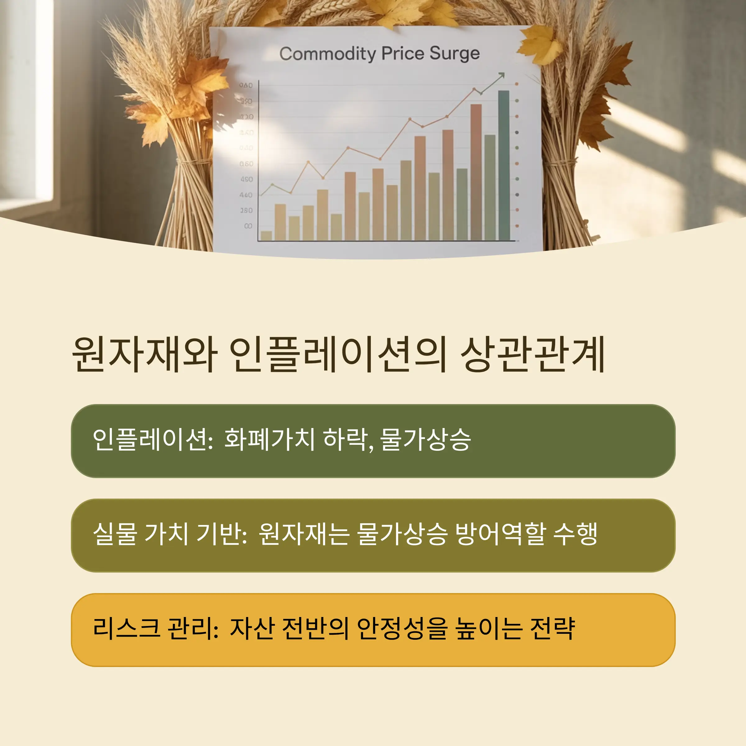 결론적으로 원자재는 단순한 투자 수단이 아니라, 인플레이션 헤지와 포트폴리오 다변화를 동시에 달성할 수 있는 전략적 자산군이라 할 수 있습니다.